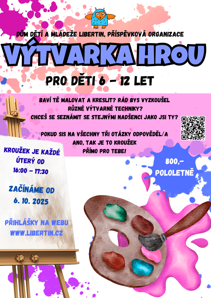 Kroužek HRA S VÝTVARKOU tě seznámí s různými technikami, materiálem a to vše zábavnou formou. (: